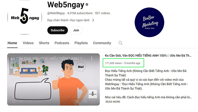 1000 view youtube được bao nhiêu tiền ở Việt Nam? 1000 view Youtube được bao nhiêu tiền ở Mỹ? 100 triệu view youtube được bao nhiêu tiền ở Việt Nam?,… Có lẽ, đây là câu hỏi thắc rất nhiều bạn mới bước chân vào xây dựng kênh Youtube. Muốn biết chi tiết, hãy cùng BeoBeo Marketing tham khảo ngay bài viết.