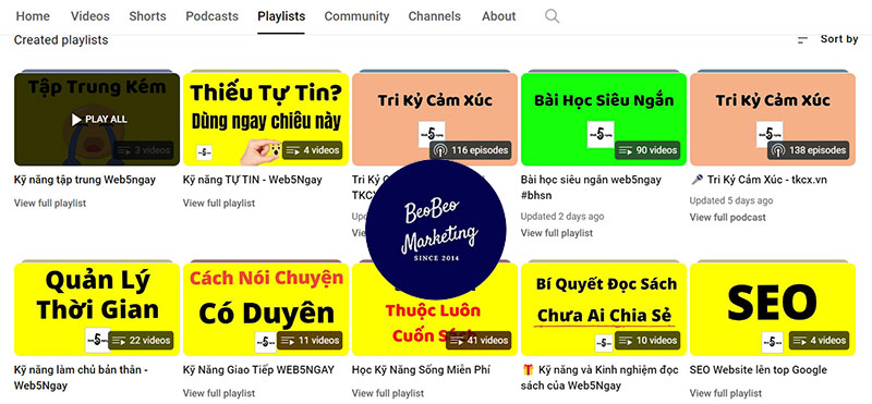 Bạn có thể phân ra thành nhiều mục chủ đề nhỏ trong một chủ để lớn để chứa các video tương ứng với nhau. Mục đích để tạo sự tương tác giữa các video và thúc đẩy người xem có thể xem liên tục, tạo hiệu ứng tốt cho việc xây dựng kênh và giúp video dễ dàng được đề xuất nhiều hơn. Việc tạo playlist để tạo trải nghiệm tốt nhất giúp người dùng dễ dàng tìm thấy video mà họ tìm kiếm.