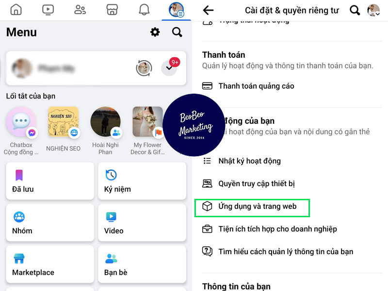 Bạn truy cập vào giao diện Facebook trên máy tính và thực hiện tương tự các bước trên điện thoại nhé! BeoBeo Marketing có minh họa qua hình ảnh cho bạn dễ dàng theo dõi.