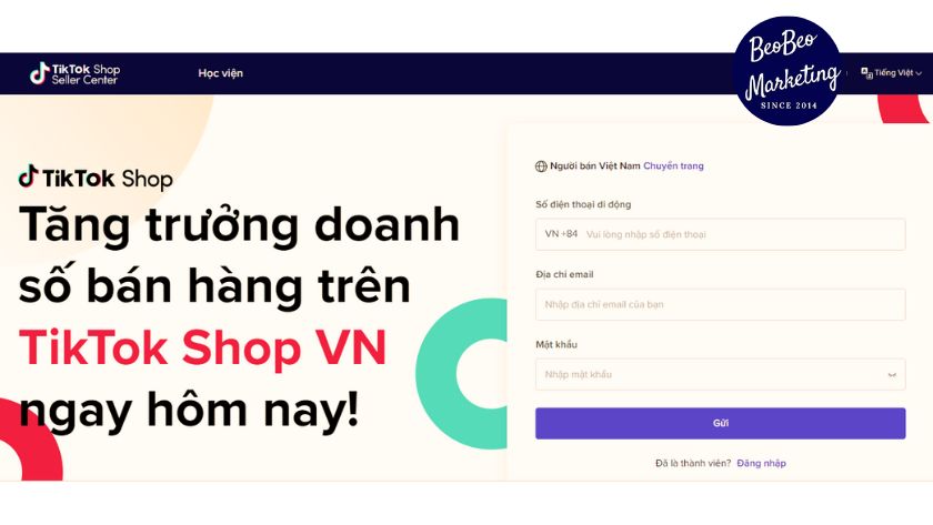 - Bước 1: Truy cập Trung tâm người bán Tiktok Shop và tiến hành đăng nhập vào cửa hàng của bạn.