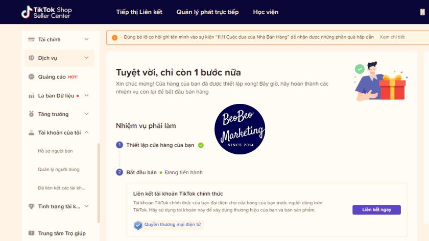 Tuy nhiên, nếu bạn đã đủ điều kiện về followers, cụ thể là đã sở hữu hơn 1000 followers, thì bạn cũng cần thao tác một số bước để tiến hàng đăng ký và kiên kết Tiktok Shop để hoạt động. Cụ thể là sau khi đăng ký Tiktok Shop trong Trung tâm người bán của Tiktok Shop và vượt qua bài đánh giá, bạn vẫn chưa thấy biểu tượng “giỏ hàng” xuất hiện trong ứng dụng Tiktok cá nhân của bạn. Chính vì thế, bạn cần phải thực hiện các bước bổ sung được yêu cầu để liên kết các tài khoản. Hãy làm theo các hướng dẫn sau từ Beobeo Marketing: