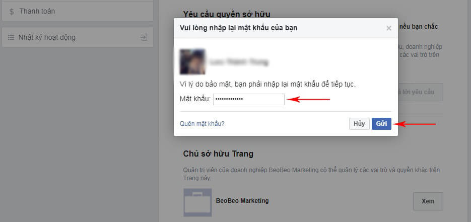 Lưu ý: Chỉ khi bạn là admin duy nhất thì bạn mới có thể tạo quyền chủ sở hữu fanpage.
