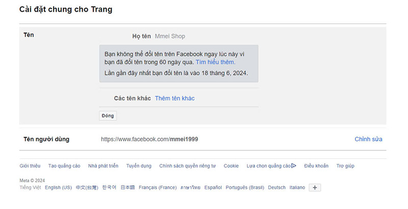 Fanpage bị chặn đổi tên, bị giới hạn đổi tên.