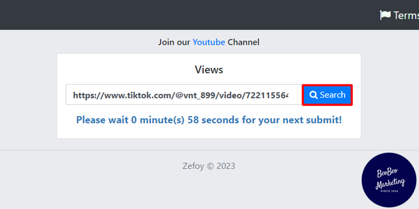 - Bước 4: Nhập link video muốn auto view > Chọn “Search”.