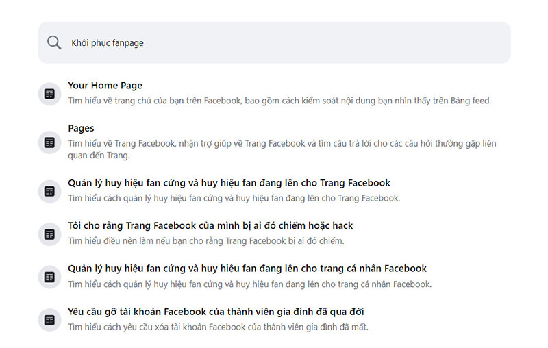 1. Khôi phục lại Fanpage Facebook bị xóa