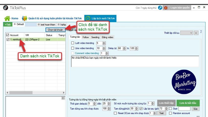 - Ngoài ra, hỗ trợ tương tác tự động thông qua seeding video cũng là một cách giúp quá trình nuôi nick Tiktok hiệu quả hơn mà ít tool nuôi acc Tiktok nào hỗ trợ được.