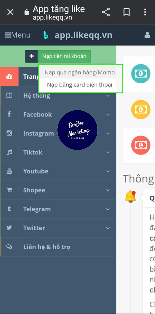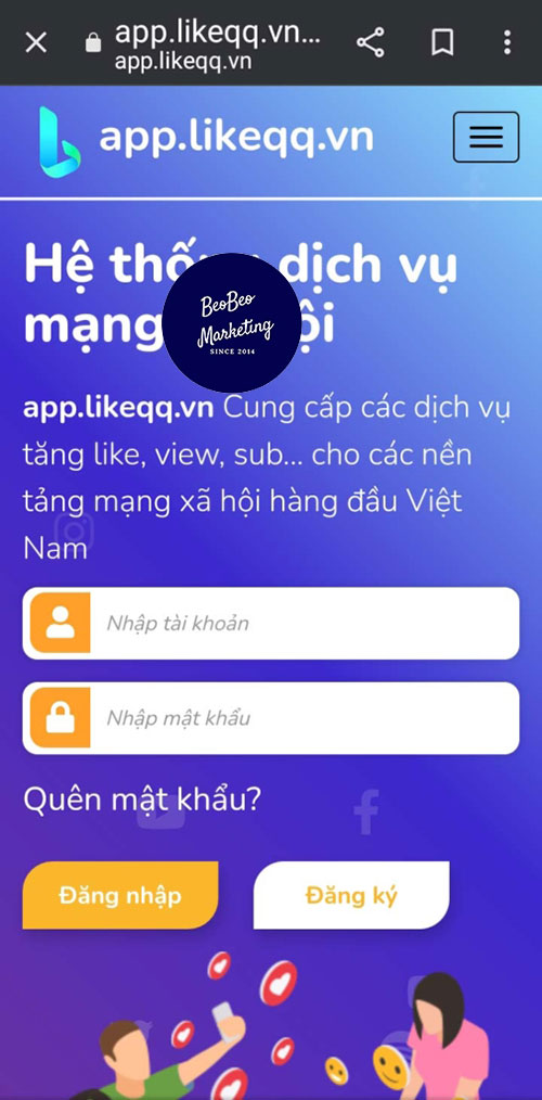 - Bước 2: Đăng ký thành công, đăng nhập vào hệ thống Likeqq.vn.