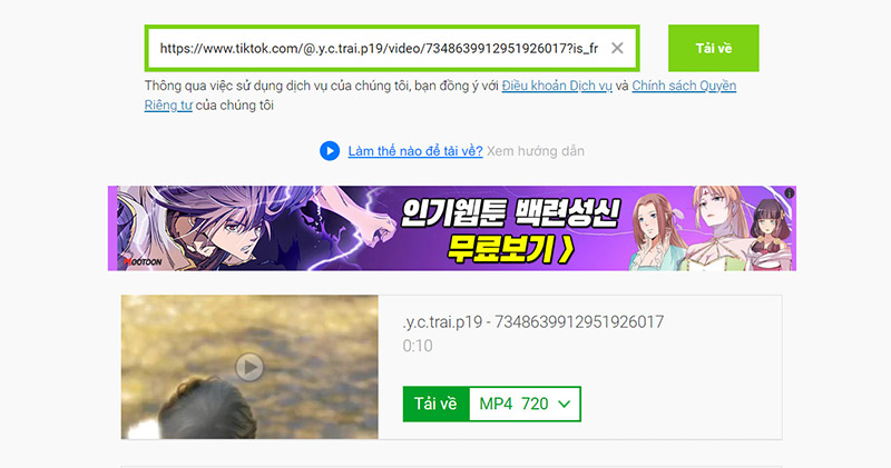 - Dán liên kết video TikTok vào công cụ và chọn “Lưu video”.