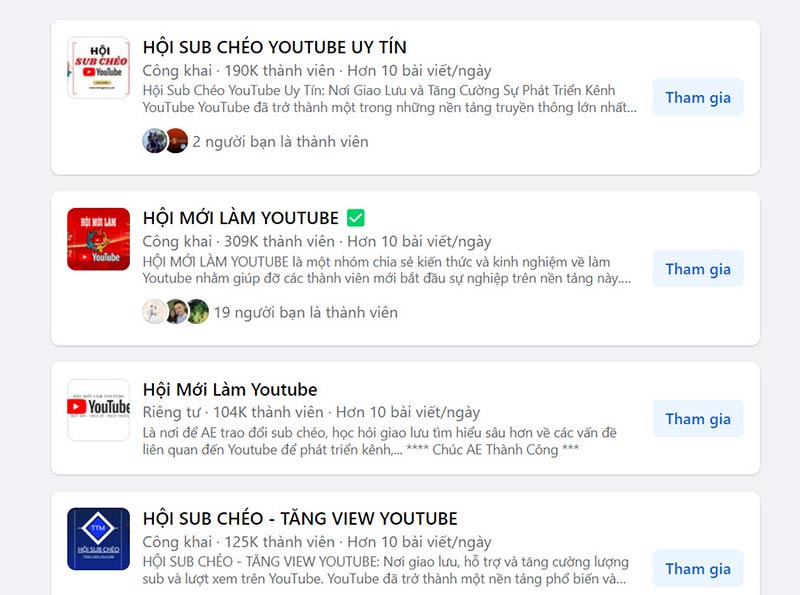 - Bước 1: Tìm và tham gia các hội trao đổi sub Youtube