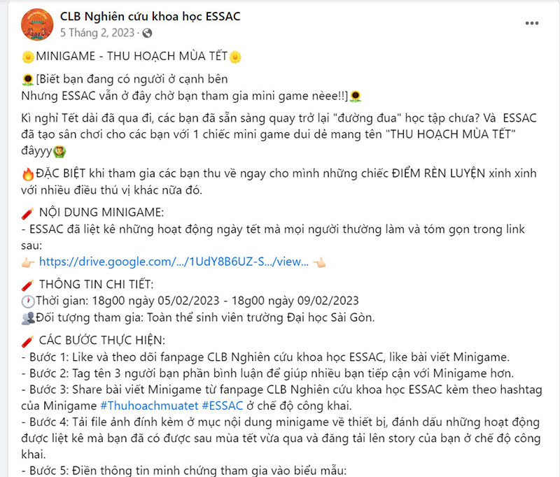 - Tăng tương tác: Khuyến khích người dùng like, share, comment và tag bạn bè trong các bài đăng. Tổ chức các hoạt động, minigame để tăng tương tác. Trả lời tin nhắn và bình luận của người dùng một cách nhanh chóng và chuyên nghiệp.
