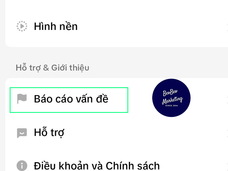 - Bước 2: Tiếp đến, bạn chọn:” Cài đặt và quyền riêng tư”, chọn:” Báo cáo vấn đề”, chọn mục:”LIVE”.