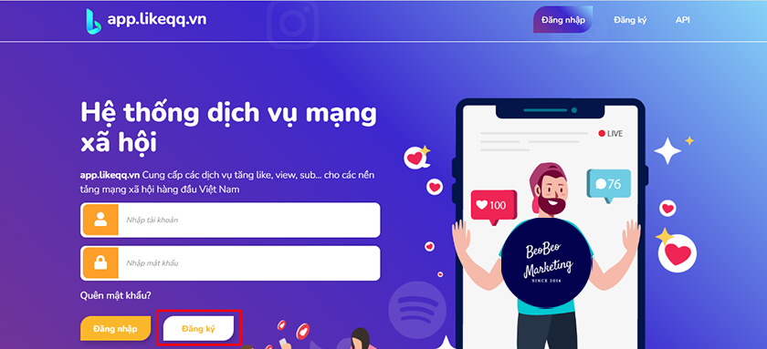 - Bước 1: Vào trang web: https://app.likeqq.vn/auth/login