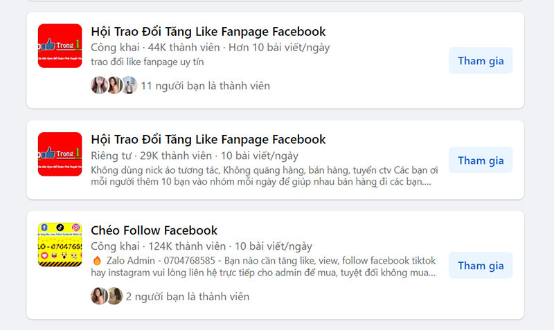 Tham gia vào các hội nhóm trao đổi like uy tín trên Facebook.