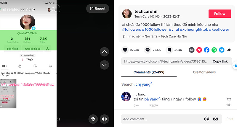 Hiện tại, trên TikTok có các video thịnh hành, content làm về nội dung tăng sub tiktok chéo. Chủ video chỉ cần lên video kêu gọi như: “Mọi người ơi tương tác giúp em lên 1000 fl với ạ”. kèm câu nói “ Mình sẽ tương tác đủ lại cho mọi người nhé”. Cách làm này có rất nhiều bạn hưởng ứng đôi bên đều có lợi, rất nhiều bạn thực hiện thành công ngoài mong đợi. Cùng với đó, bạn hãy kèm thêm các hastag: #tuongtaccheo❤ #tuongtac_xuhuong #saochepkienket❤️ #giuplen1000fl #tăngtuongtacticktok #tăng để đạt hiệu quả tối đa nhé!