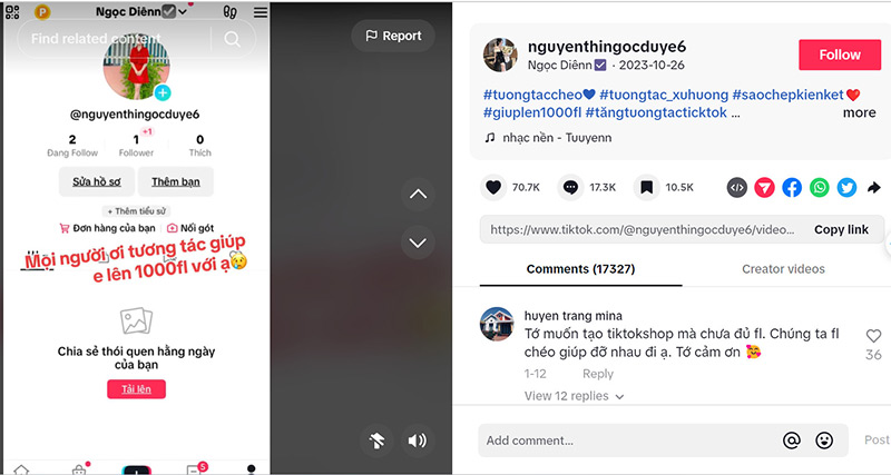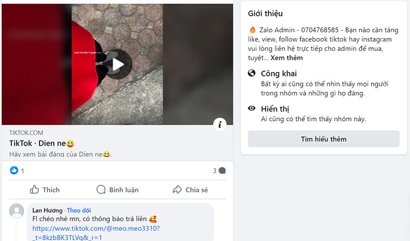 - Đăng bài viết kèm link tiktok hoặc để dưới comment để mọi người có thể like chéo.