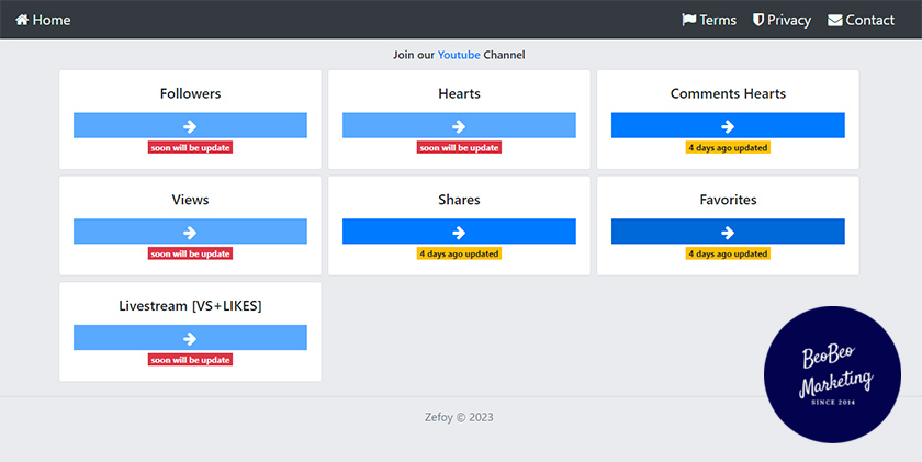 - Bước 1: Truy cập đường link https://zefoy.com/ (link cũ: https //viptools.es tik tok).