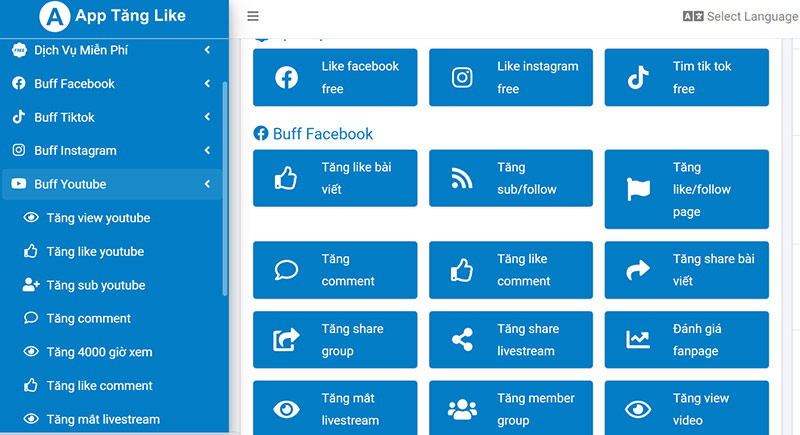 - Web chuyên tăng like, buff like youtube, facebook, tiktok, instagram hiệu quả với số lượng lớn.
