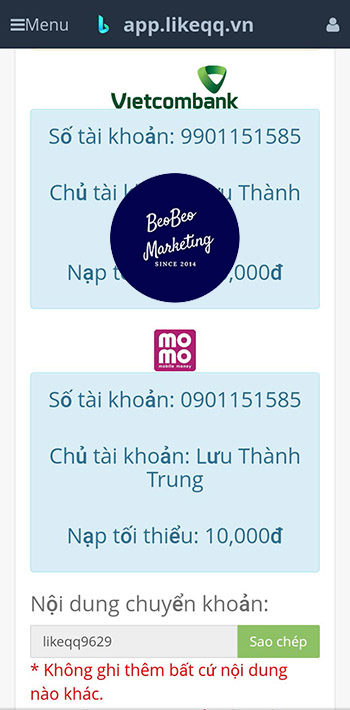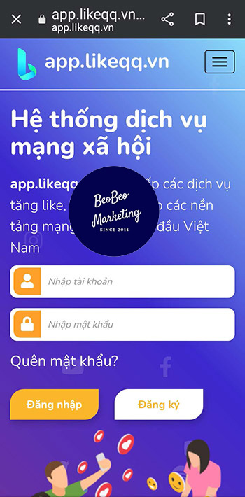 - Bước 2: Đăng ký thành công,, đăng nhập vào vào hệ thống Likeqq.vn.